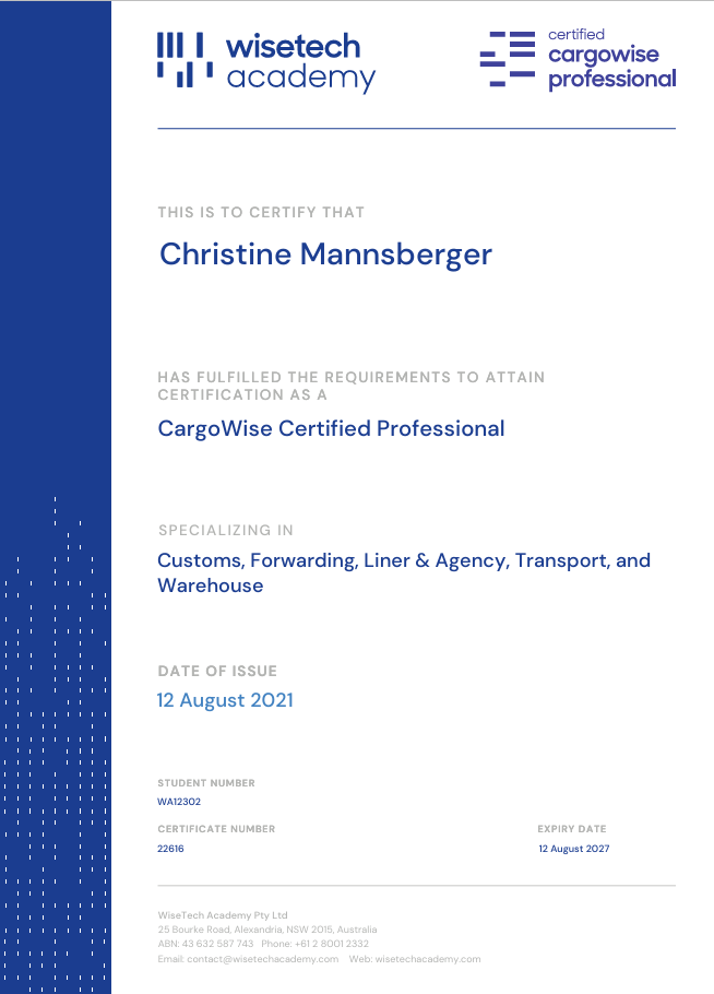 1 Certified Professional with the highest level of accreditation in CargoWise